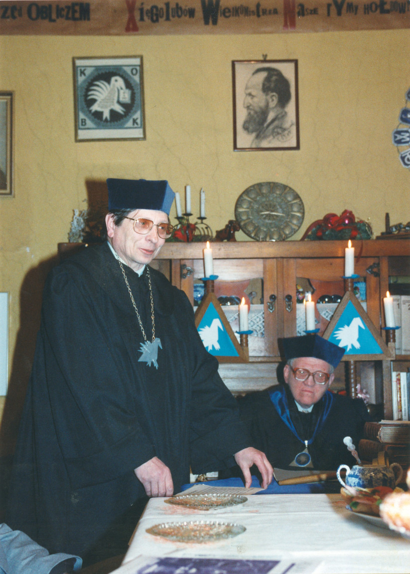 Jerzy Duda - obecny Wielki Mistrz Odrodzonego Zakonu Bibliofilskiego z Tadeuszem Witkiewiczem. Fot. Konrad Pollesch