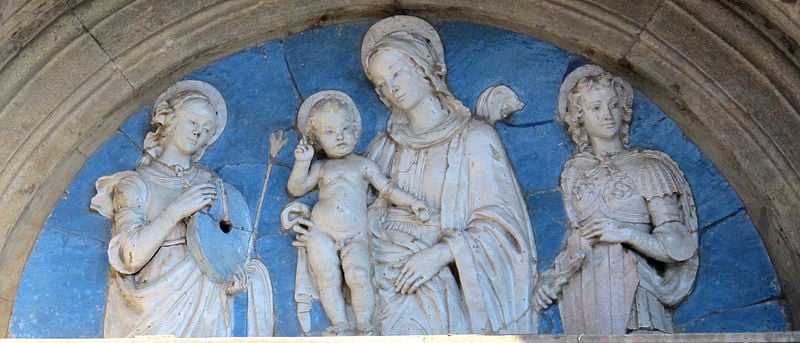 Św. Krystyna z Bolseny obok Madonny i św. Jerzego, fragment dekoracji bazyliki Santa Cristina w Bolsenie, Benedetto Buglioni, koniec XV w.