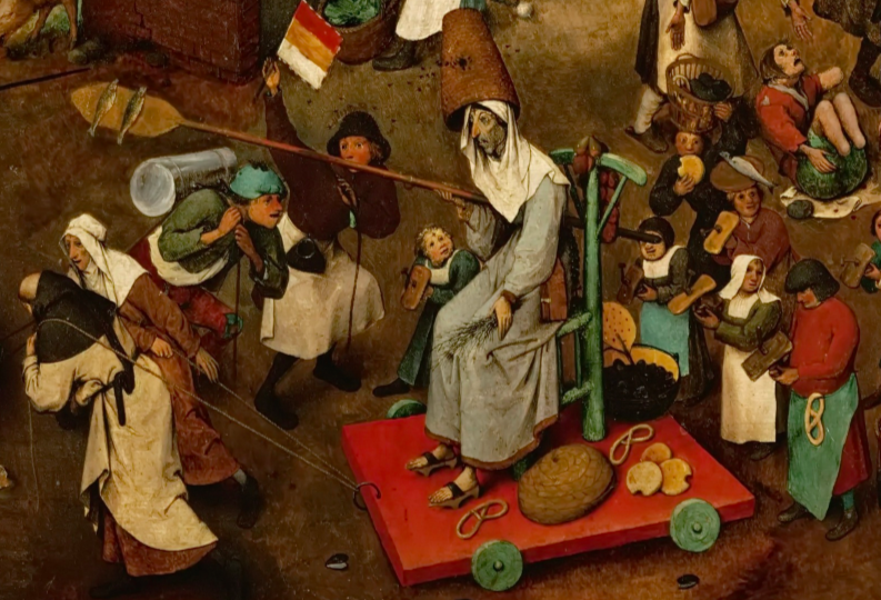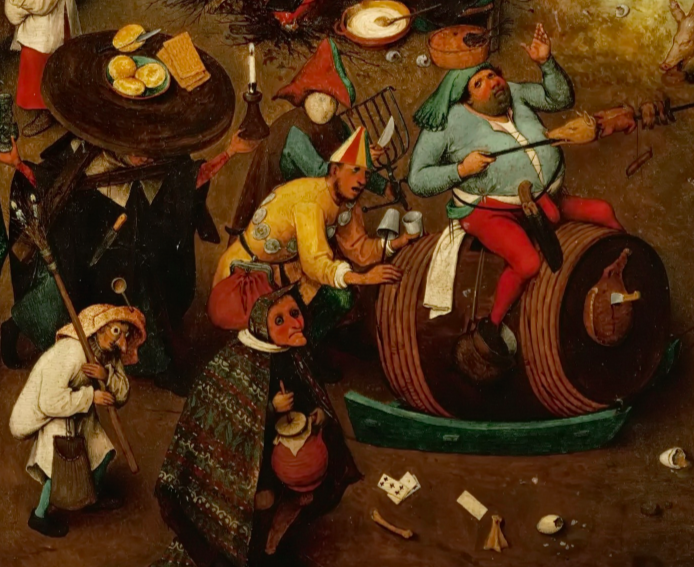 Personifikacja Karnawału, detal obrazu Pietera Bruegela Starszego, Walka Karnawału z Postem, 1559, Kunsthistorisches Museum w Wiedniu