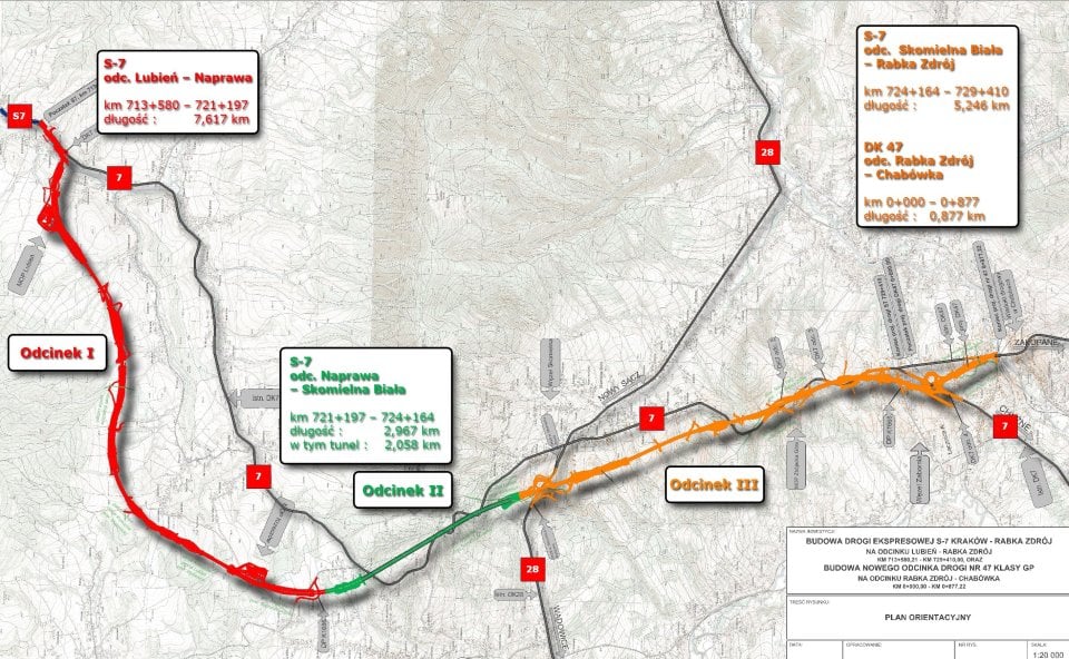 Budowa nowej zakopianki od Lubnia do Rabki - Zdroju rozpoczęła się w 2016 r. Koszty wszystkich prac wyniosą ponad 2 mld 105 mln zł. Zakończenie wszystkich prac na tej drodze zaplanowane jest na 2021 r. Ostatnim etapem będzie oddanie odcinka tunelowego Naprawa – Skomielna Biała, którego koszt wyniesie prawie 1 mld zł.