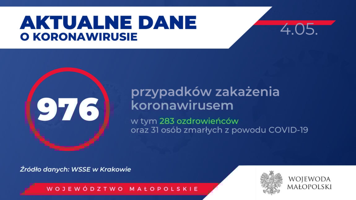 Badania laboratoryjne potwierdziły zakażenie koronawirusem SARS-CoV-2 u kolejnych osób. W tej grupie jest dziecko i młody mężczyzna z Nowego Sącza, którzy przebywają w izolacji. Obecnie w Małopolsce zakażenie koronawirusem zostało potwierdzone u 976 osób.