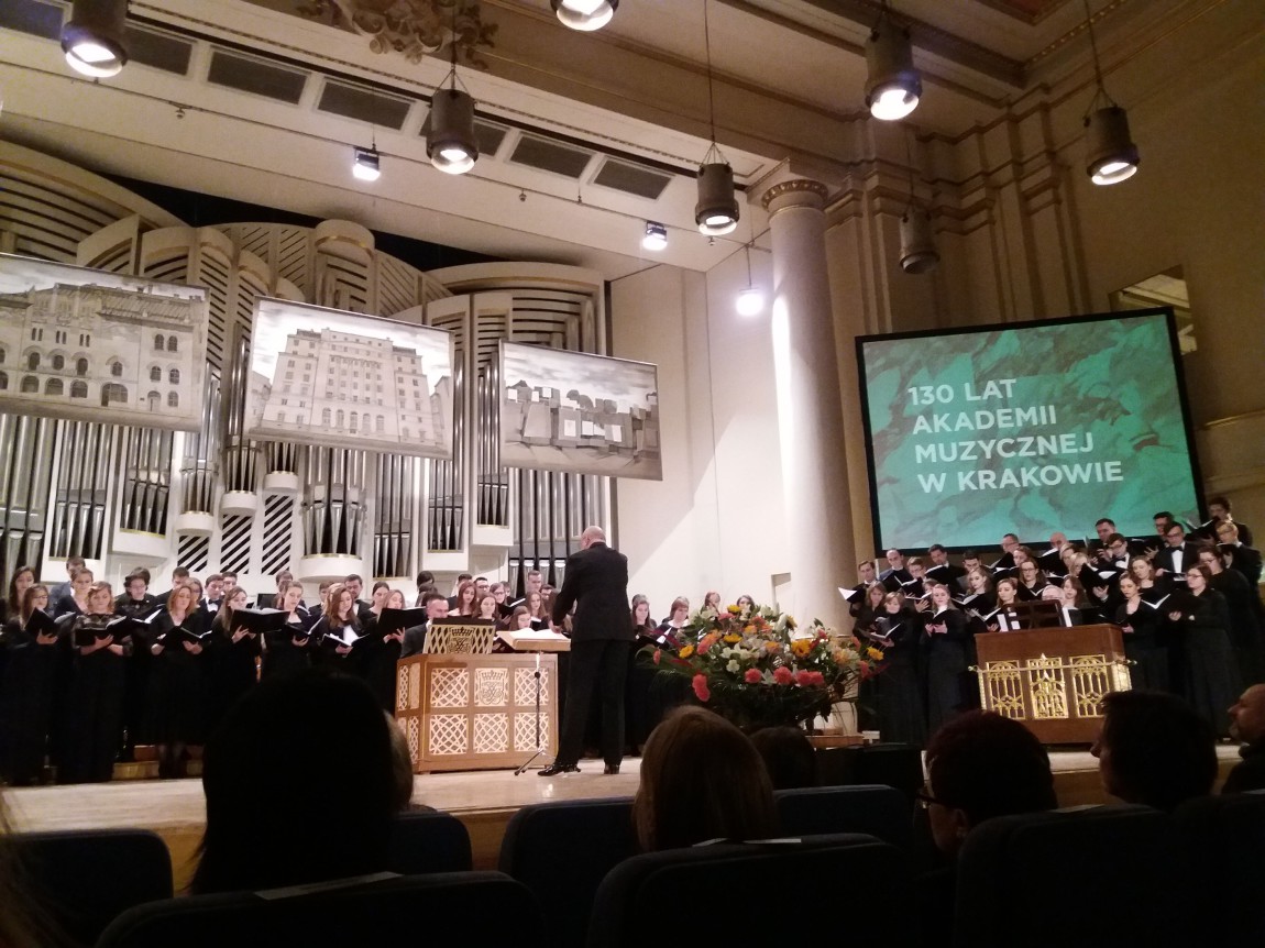 Akademia Muzyczna w Krakowie świętowała 130-lecie! Tak, to już 130 lat, bo uczelnia wywodzi swoją historię od Konserwatorium Krakowskiego, które zostało założone 1 lutego 1888 roku przez Władysława Żeleńskiego, kompozytora, absolwenta konserwatoriów w Pradze i Paryżu. Jubileusz trwał całą niedzielę, 26 lutego i zakończył się wieczorem, koncertem w Filharmonii Krakowskiej. Na widowni pojawili się, i absolwenci, i pedagodzy. Było to wielkie święto muzyków i muzyki, a rozmowy na bankiecie, na który została zaproszona cała koncertowa publiczność trwały długo i wspomnieniom nie było końca.
