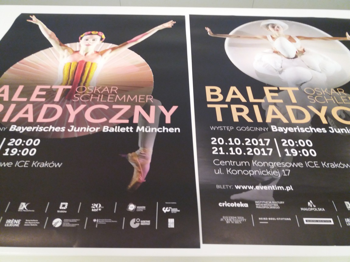 Długo czekałam na ten spektakl. Można było o nim wiele przeczytać, a także zobaczyć jego fragmenty w Internecie. Wczoraj, 20 października, w sali teatralnej Centrum Kongresowego ICE, w Krakowie za sprawą Cricoteki oraz Domu Norymberskiego, Goethe Instytutu i KBF-u wystąpił Bayerisches Staatsballett z Monachium, który przedstawił rekonstrukcję pochodzącą z 2014 roku baletu triadycznego Oskara Schlemmera. Odtworzenia dokonał Gerhard Bohner we współpracy z Akademie der Künste w Berlinie w ramach projektu niemieckiej fundacji Tanzfonds, zajmującej się odkrywaniem po latach ważnych spektakli dla historii baletu i teatru tańca. Przedstawienie zaskoczyło nowoczesnością, zwłaszcza, że od prapremiery minęło prawie sto lat. Wywołało także kuluarowe rozmowy, na ile założenie artystyczne Schlemmera zostało w tym spektaklu odczytane i zrealizowane. Jak wiadomo wszystkie rekonstrukcje są jedynie próbą dotarcia do sedna. Zaprezentowana w Krakowie propozycja wydaje się być niezwykle udana. Fascynuje, zachwyca, zadziwia i wzbudza wielkie emocje i na pewno nie pozostawia nikogo obojętnym.