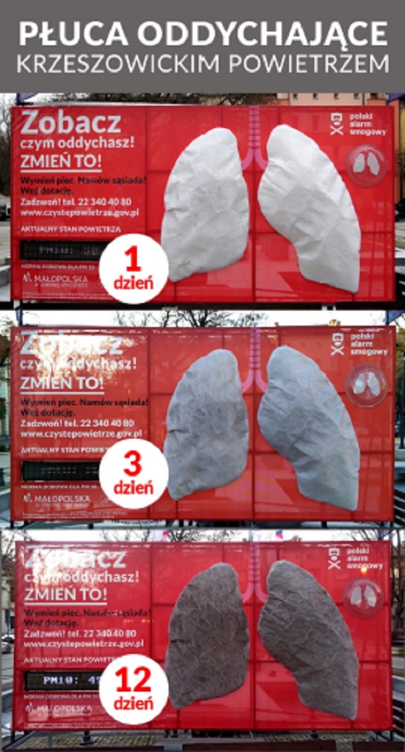 W ramach kampanii, oprócz prowadzonych pomiarów, w wybranych gminach stanął także model sztucznych płuc. Kilkumetrowe płuca okryte białą tkaniną filtracyjną „oddychały” zanieczyszczonym powietrzem, co miało na celu unaocznienie mieszkańcom, co dzieje się z naszym organizmem, gdy jesteśmy narażeni na niebezpieczeństwo oddychania trującym powietrzem. Po kilkunastu dniach białe płuca stawały się czarne.
