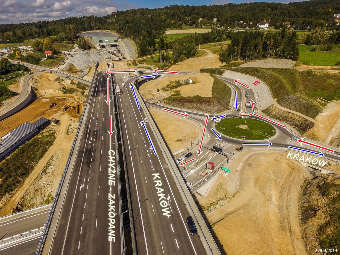 Pojazdy jadące od strony Jordanowa DK 28 w kierunku Zakopanego nie objeżdżają ronda, tylko na pierwszym zjeździe z ronda kierują się na łącznicę S7, tak jak było do tej pory.