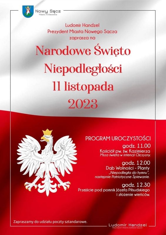 Z okazji 105. rocznicy odzyskania przez Polskę niepodległości, w Nowym Sączu odbędą się uroczyste obchody pod patronatem prezydenta miasta. Rozpocznie je o godzinie 11 nabożeństwo w Kościele pw.św. Kazimierza, skąd uczestnicy przejdą pod Pomnik Józefa Piłsudskiego, pod którym złożą wieńce.