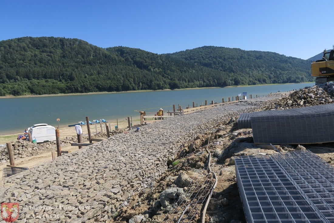 - Pierwszy etap polegający na regulacji i profilowaniu brzegu jeziora już ruszył. Wykonuje go gmina Ropa. Powstanie 145 m zabezpieczonego nadbrzeża wraz ze schodami zejściowymi w stronę tafli wody. Nadbrzeże będzie 3-stopniowym połączeniem kamienia i płyt kompozytowych.