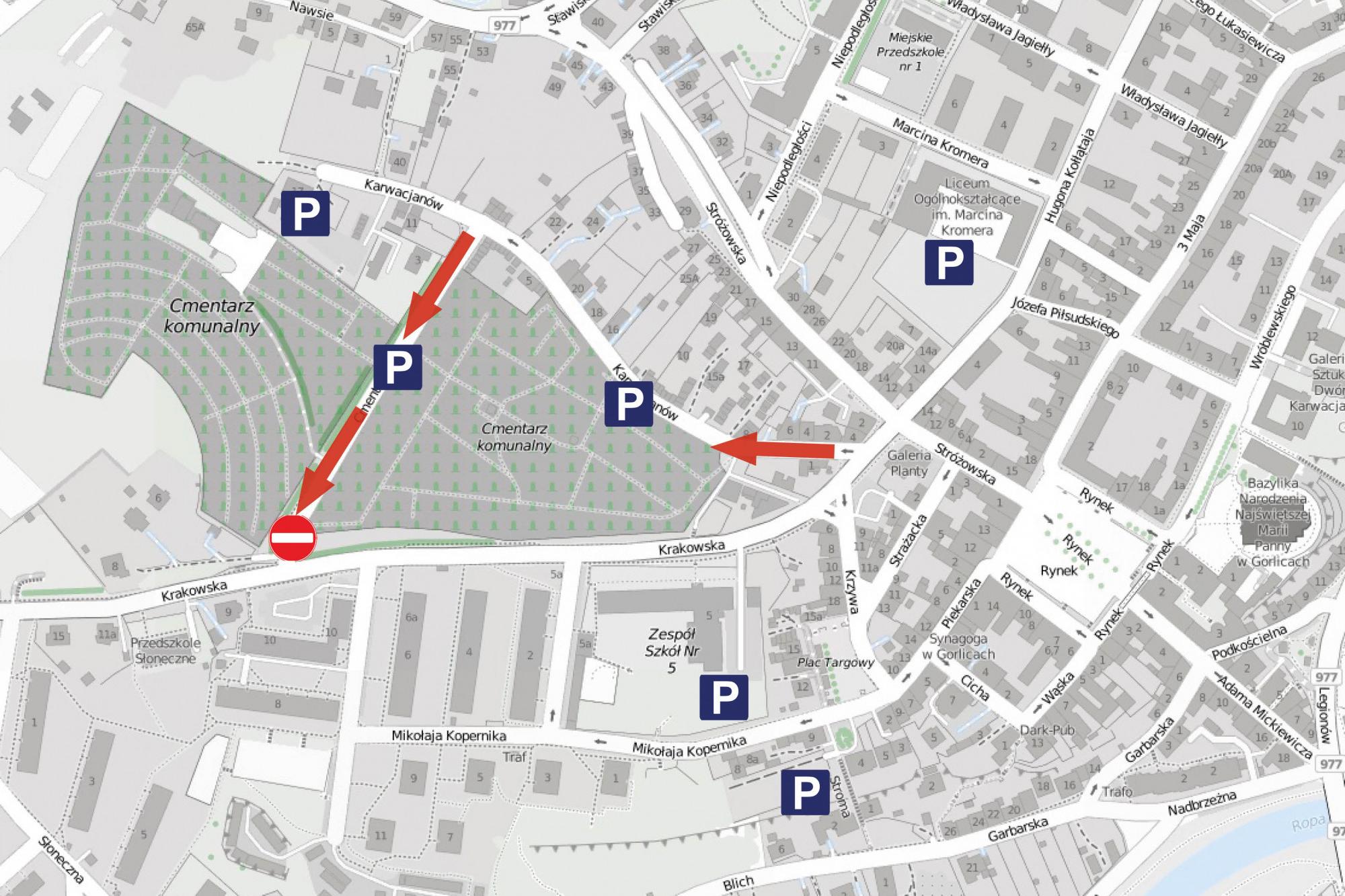 Dodatkowe miejsca parkingowe zorganizowane zostaną 31 października oraz 1 listopada na terenie Miejskiego Zespołu Szkół numer 5 przy ulicy Krakowskiej oraz przy Liceum Ogólnokształcącym imienia Marcina Kromera od strony ulicy Kołłątaja.