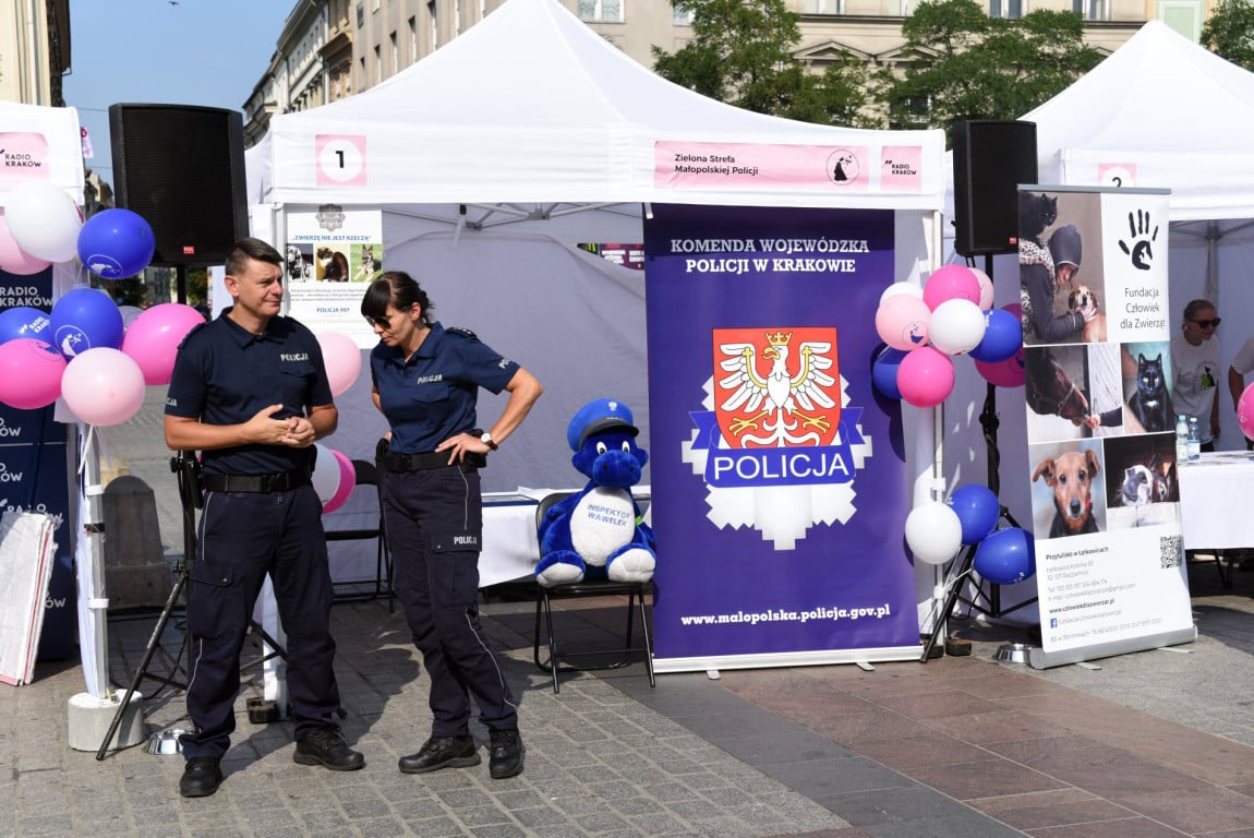 W pochodzie razem z jamnikami szły też psy z małopolskich schronisk, a na stoisku "Zielonej Strefy" przedstawiciele małopolskiej policji - do godz.14 - mówilą o tym, jak reagować na znęcanie się nad zwierzętami.