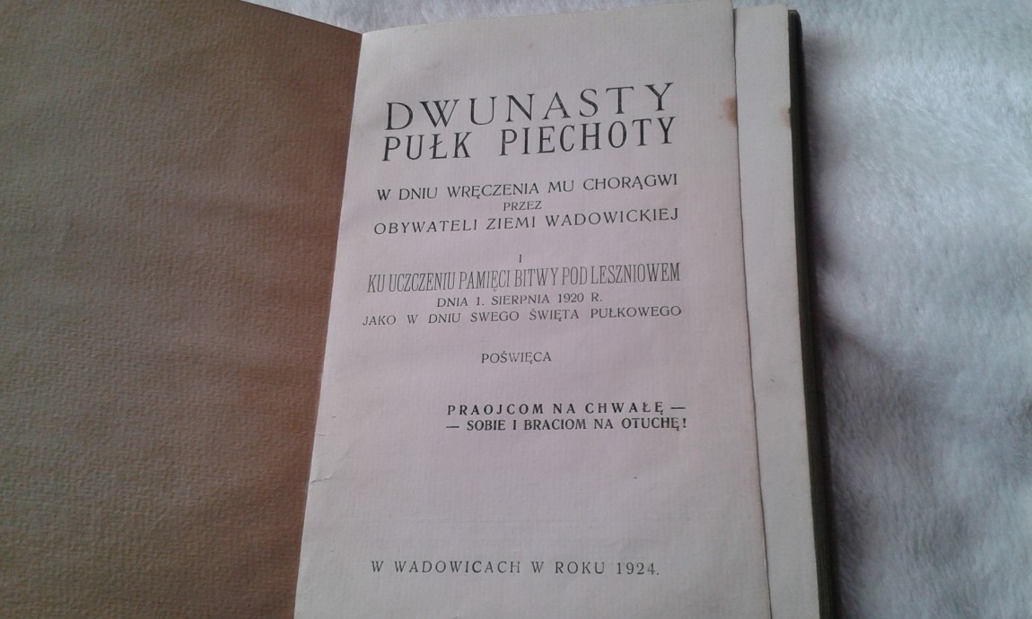 Dziadek był w słynnym 12 pp. Pułk obchodził swoje święto 1 sierpnia w rocznicę boju stoczonego w 1920 r. pod Leszniowem, gdzie rozbił armię konną Budionnego. W r.1924 pułk otrzymał sztandar - wydano wówczas okolicznościową książeczkę ze wspomnieniami żołnierzy.