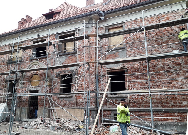 Budynek nr 40 tak zwanego „przedszkola”, które tę funkcję pełniło przed wojną, a następnie było miejscem gdzie mieszkały Siostry Służebniczki, pracujące jako pielęgniarki w kobierzyńskim Zakładzie, a po wojnie Szpitalu, W tym obiekcie trwają już prace remontowo-modernizacyjne. fot. mat. prasowe