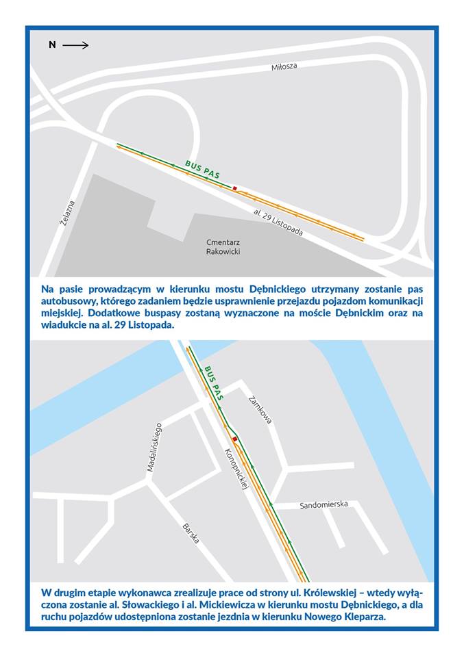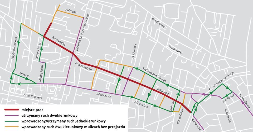 W drugim etapie wykonawca zrealizuje prace od strony ul. Królewskiej – wtedy wyłączona zostanie al. Słowackiego i al. Mickiewicza w kierunku mostu Dębnickiego.