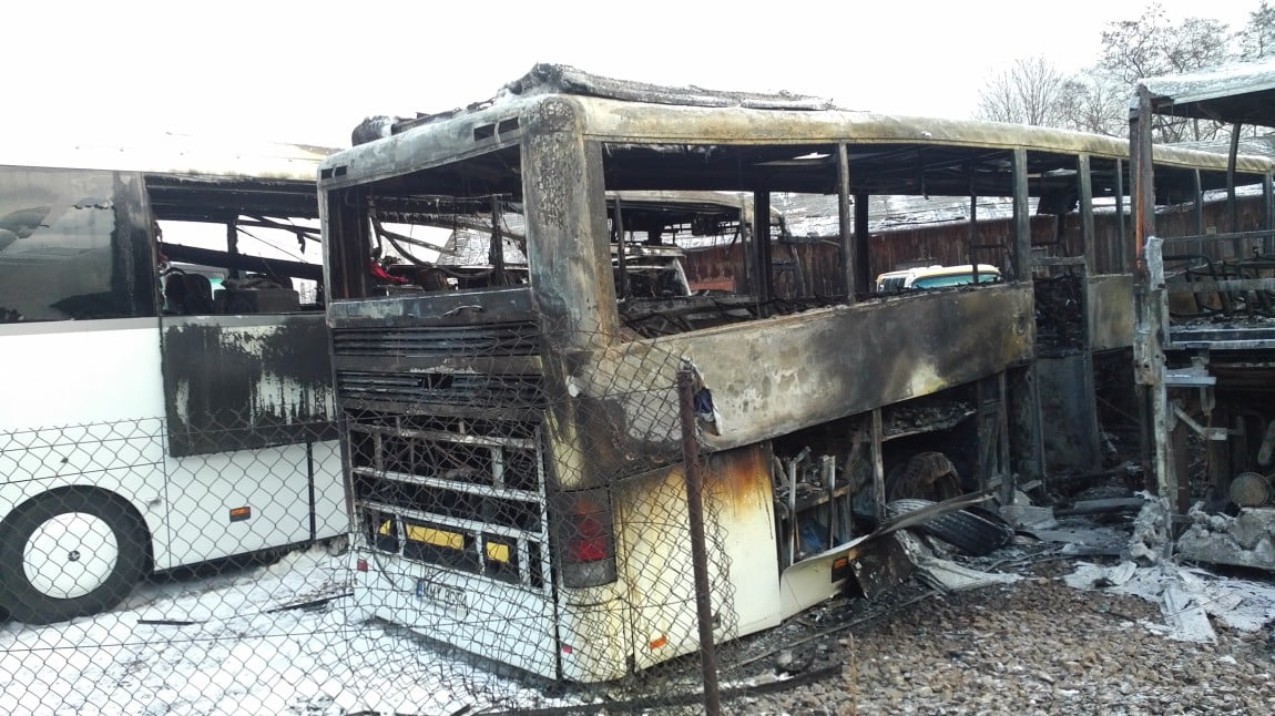 Wieczorem na parkingu strzeżonym spłonęło pięć autobusów. Pożar zaczął się we wnętrzu jednego z nich, od niego zapaliły się kolejne