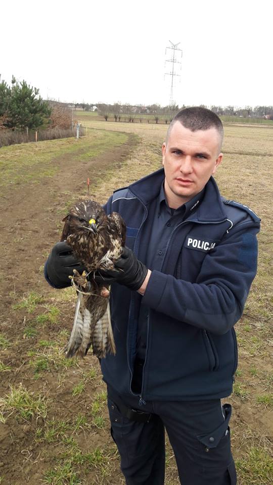 Pomimo zagojonych częściowo ran, z uwagi na poważnie uszkodzenie i brak szponów, ptak nie był w stanie samodzielnie poderwać się do lotu. Policjanci podejrzewali, że kilkanaście dni wcześniej padł czyjąś ofiarą lub miał spotkanie z liniami wysokiego napięcia. Jednak mimo braku sił i traumatycznych przeżyć, okaleczony zwierzak dzielnie walczył o przetrwanie.