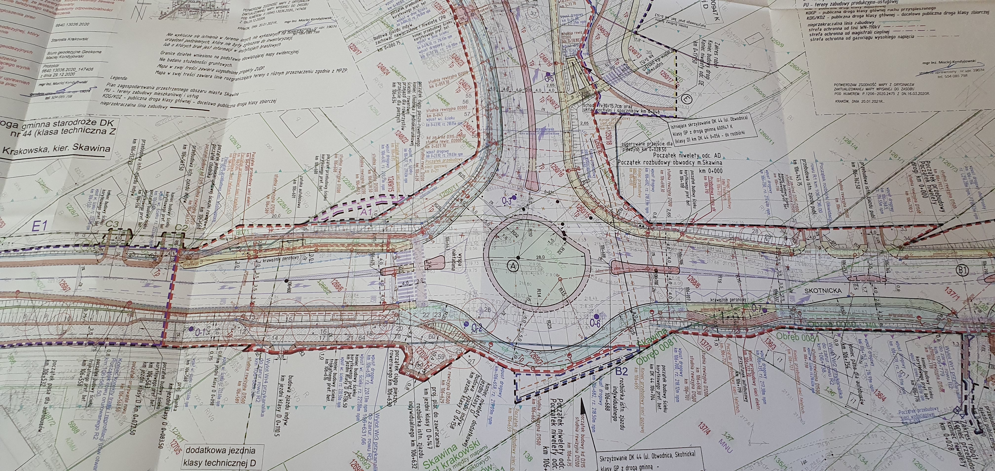 W ramach przedsięwzięcia jest przewidziana przebudowa istniejącego skrzyżowania obwodnicy Skawiny z ulicami Krakowską i Skotnicką na rondo turbinowe. Zaplanowano też m.in. przebudowę drogi gminnej (ul. Wapowskiego), wybudowanie ciągów dla pieszych i pieszo–rowerowych, zjazdów indywidualnych oraz zatok i przystanków komunikacji autobusowej.