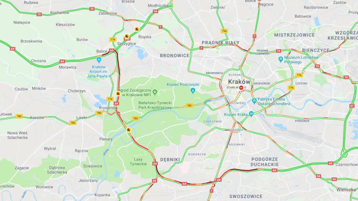 Kto nie chciał w nim stać - musiał wcześniej uciec z autostrady i jechać przez miasto, choć dojechanie aż do Balic przez centrum Krakowa wcale nie było łatwe.