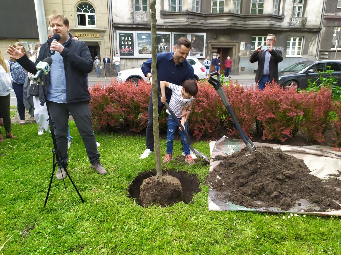 Zasadzone w poniedziałek drzewo ma około 4 metrów wysokości. "Jest nam wszystkim niezmiernie przykro z powodu tego, co się wydarzyło, ale cieszymy się, że w ten sposób możemy upamiętnić działalność artystyczną - i nie tylko – po prostu wspaniałego człowieka" - mówił dziennikarzom dyrektor Zarządu Zieleni Miejskiej Piotr Kempf. Wyjaśnił, że grab jest rodzimym gatunkiem drzewa, jest odporny, potrafi rosnąć w trudnych warunkach i nie ma wysokich wymagań. Przy tym jego liście pięknie przebarwiają się jesienią. Może osiągnąć ok. 20 metrów wysokości.
