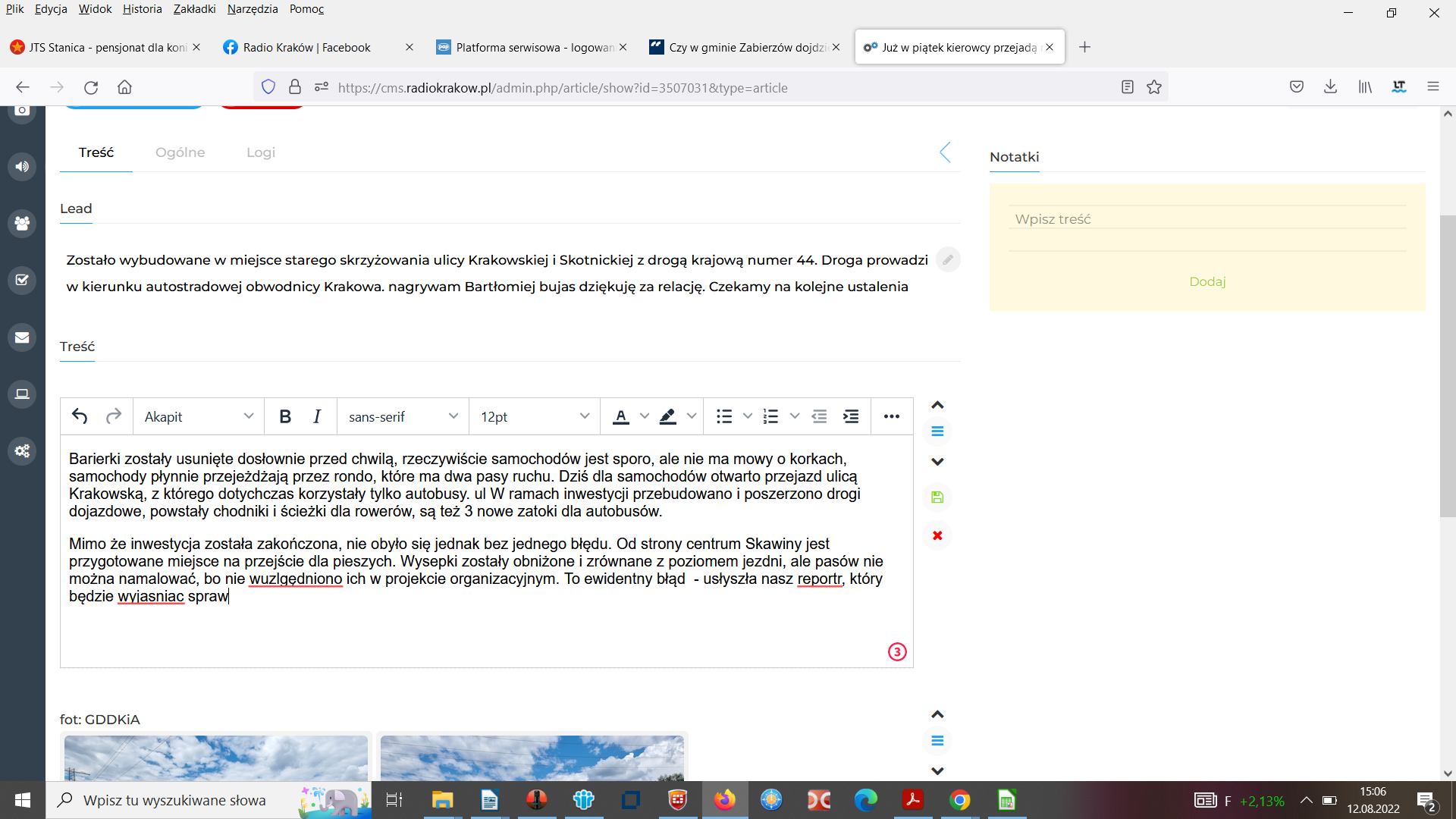 Barierki zostały usunięte dosłownie przed chwilą, rzeczywiście samochodów jest sporo, ale nie ma mowy o korkach. Samochody płynniej przejeżdżają przez nowe rondo, które ma dwa pasy ruchu. W ramach inwestycji przebudowano i poszerzono drogi dojazdowe, powstały chodniki i ścieżki dla rowerów, są też 3 nowe zatoki dla autobusów