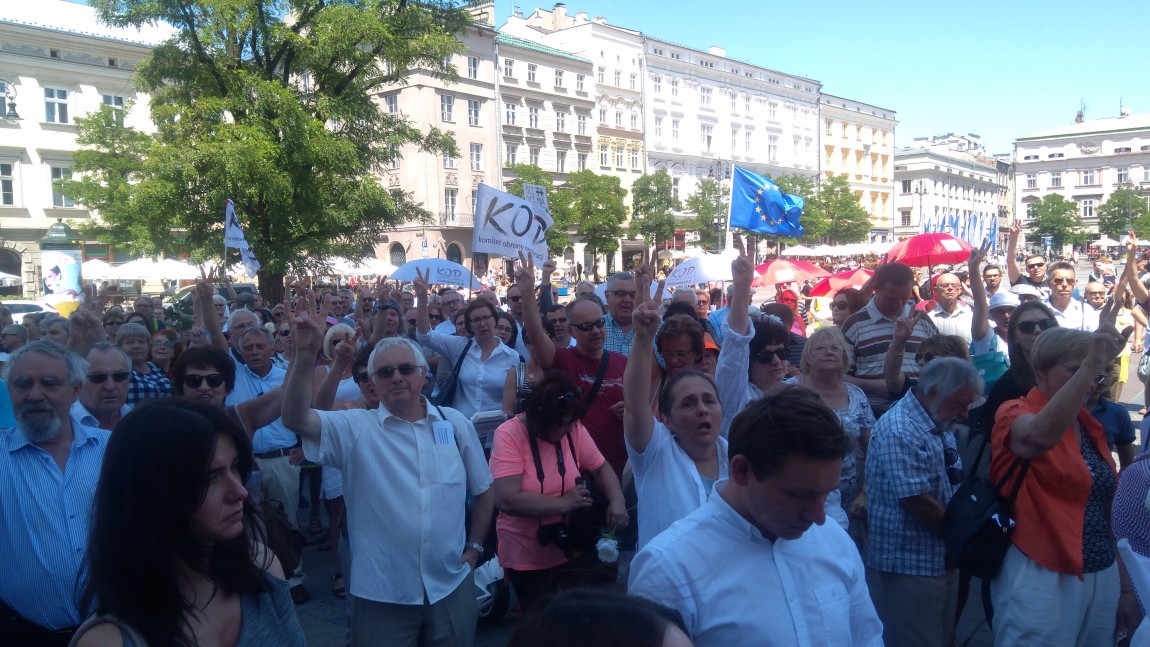 Według policji w demonstracji uczestniczyło ponad 100 osób. Manifestanci mieli ze sobą flagi KOD i UE. Skandowali "Wolność, równość, demokracja" i "Solidarność naszą bronią".