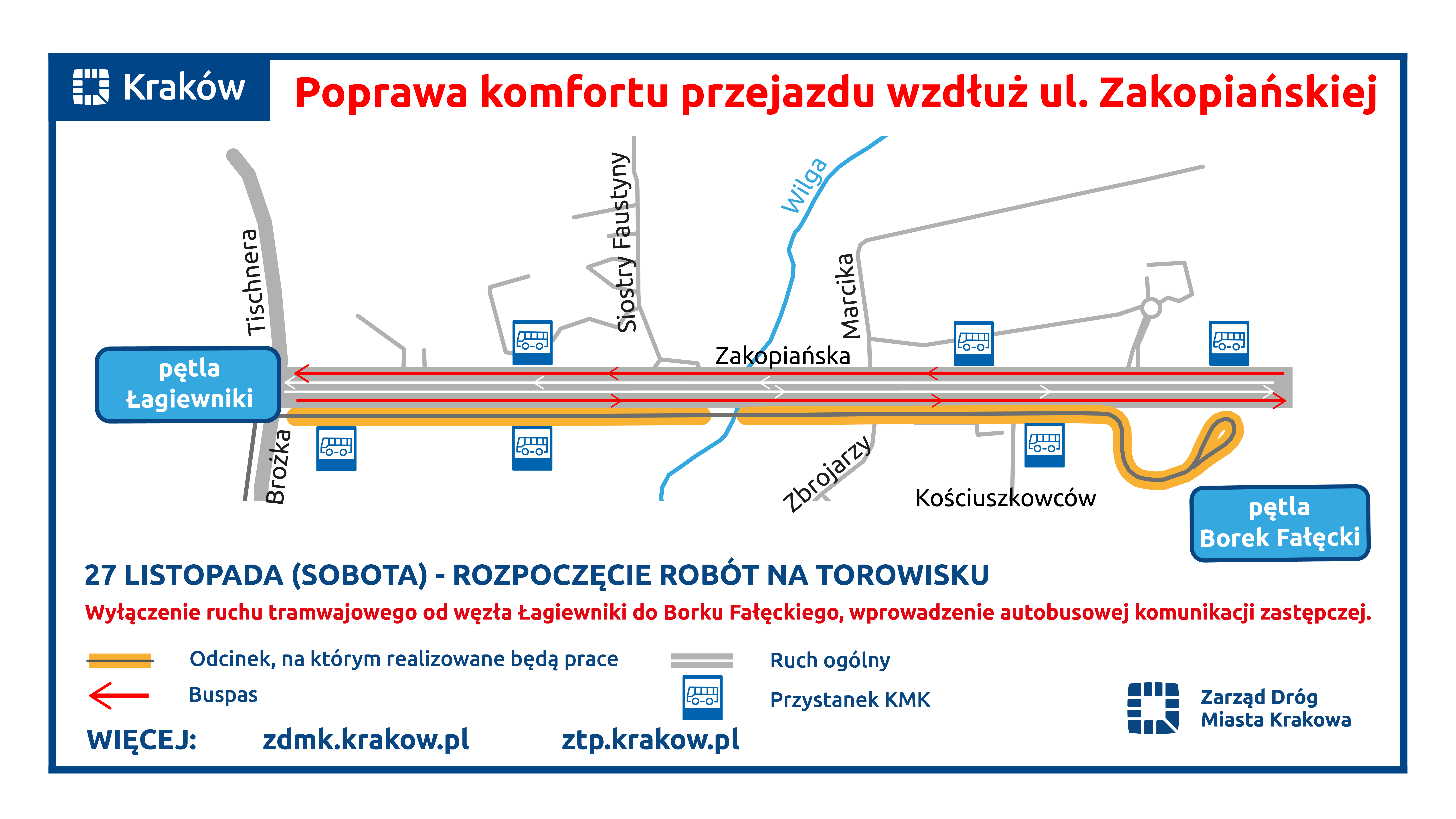 A za tydzień, dokładnie w sobotę 27 listopada ruszy od dawna zapowiadany remont torów tramwajowych przy Zakopiańskiej. Obejmie odcinek od pętli w Borku Fałęckim do Pętli w Łagiewnikach.