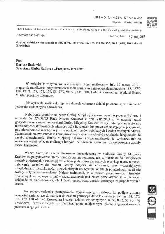 Największym terenem zielonym, jaki udało się wykupić miastu z rąk prywatnego właściciela, jest Zakrzówek. Ten kosztował 26 milionów złotych i wkrótce rozpocznie się tam budowa miejskiego parku. Wtedy pieniądze na wykup nie były zaplanowane w budżecie. Mimo to urzędnikom udało się wygospodarować potrzebną kwotę przy pomocy poprawek budżetowych.