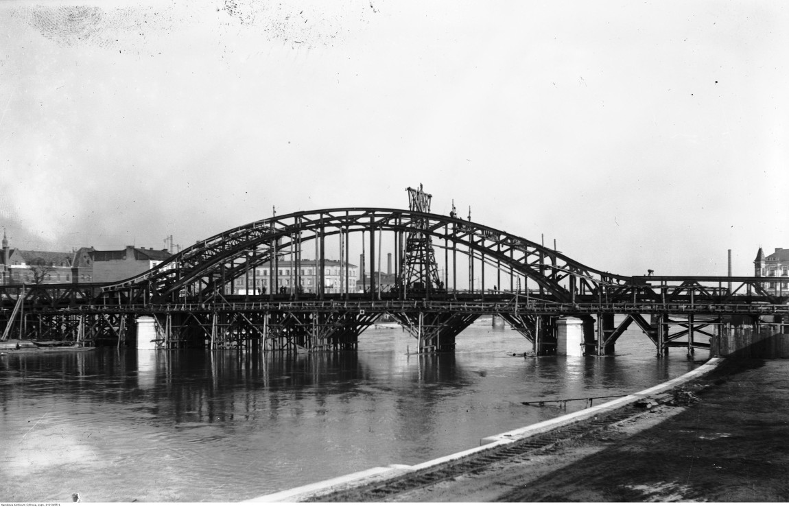 Most im. Józefa Piłsudskiego na Wiśle w Krakowie (tzw. Czwarty Most) - budowa. 1930 - 1931. Fot. NAC