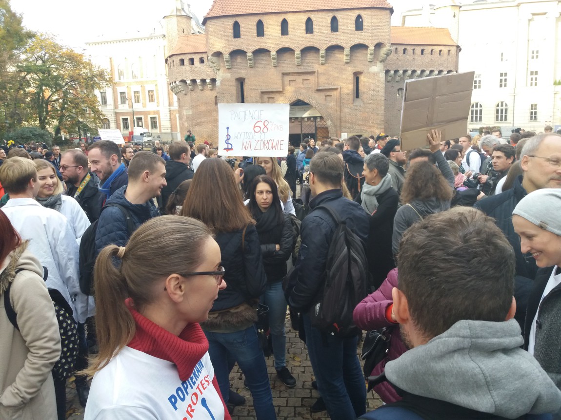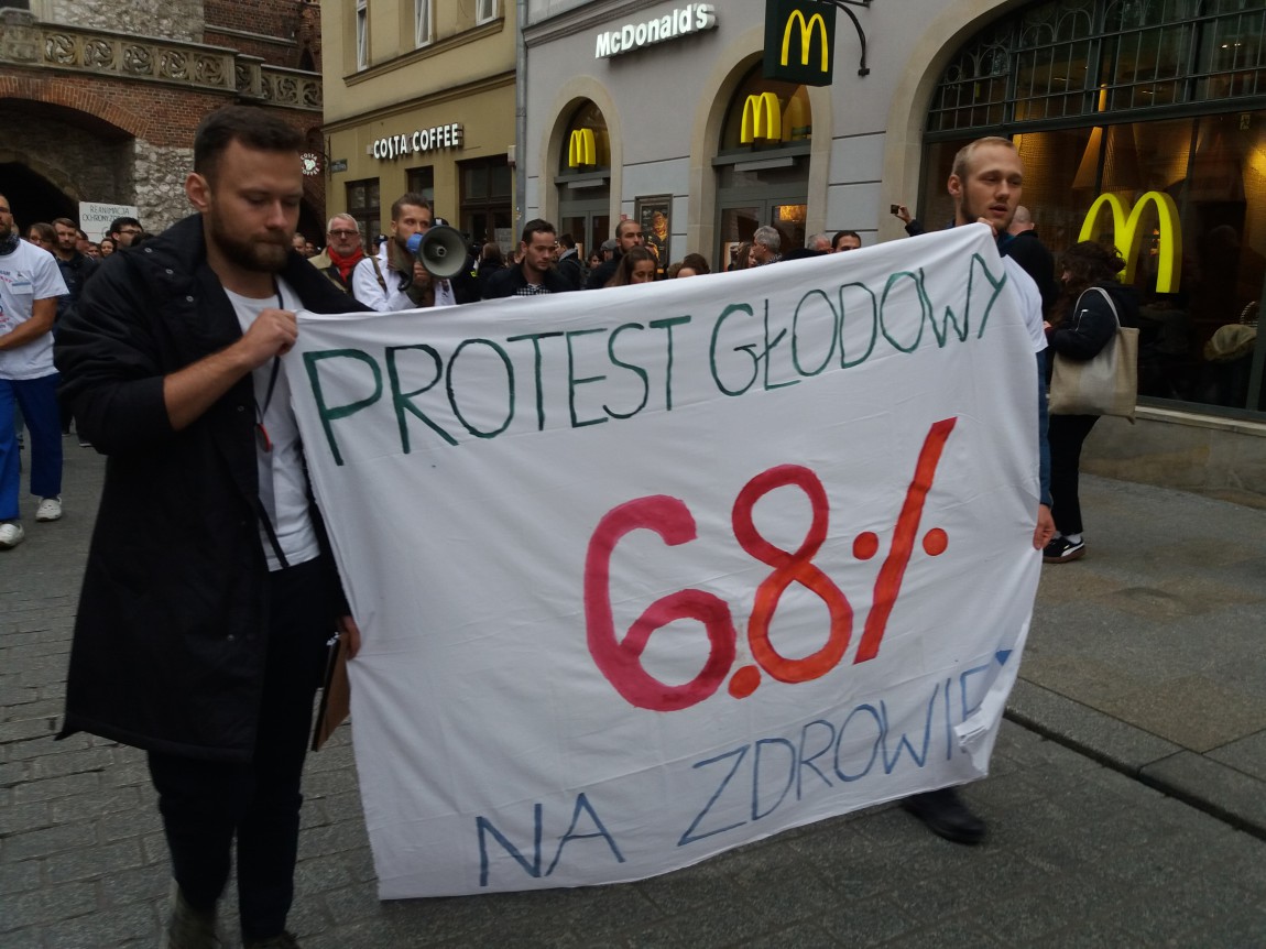 Ulicami Krakowa przeszła manifestacja poparcia dla protestujących medyków. Zorganizowali ją studenci medycyny, a wsparli lekarze, w tym Okręgowa Izba Lekarska w Krakowie.