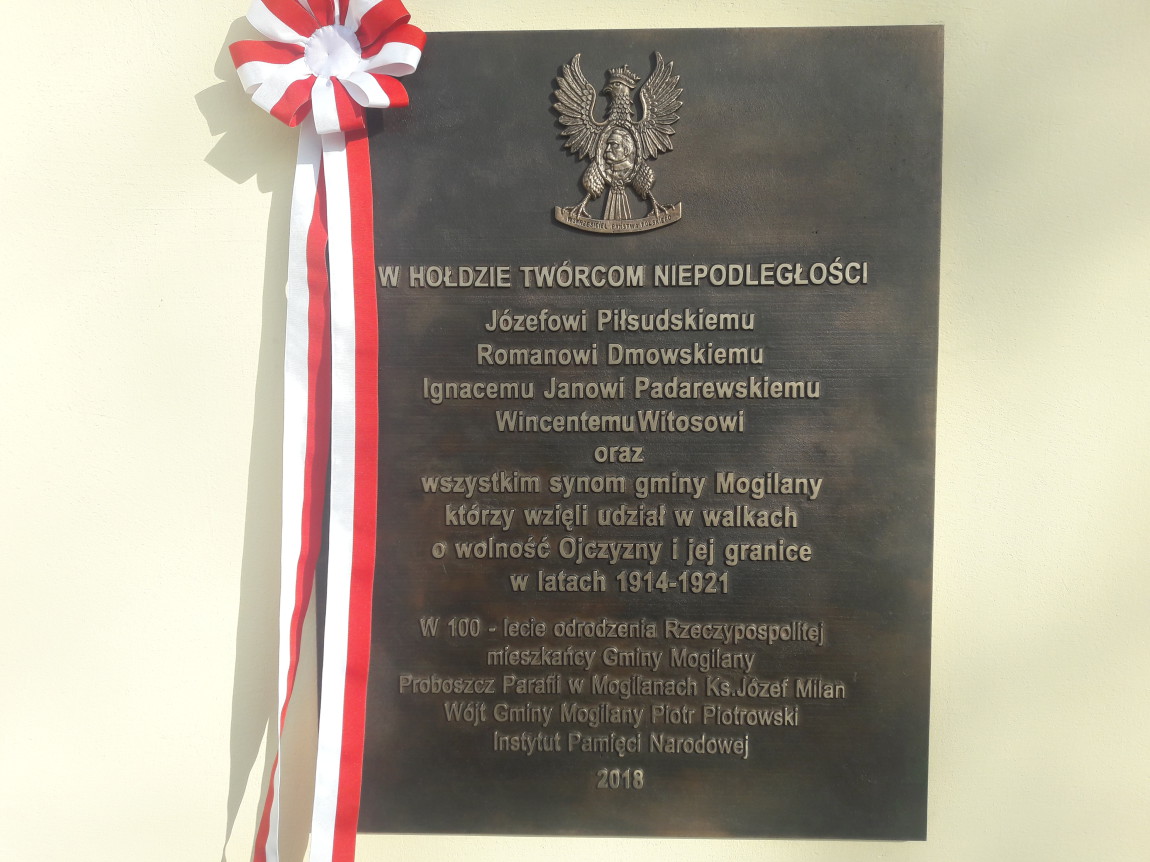 Na kamiennej tablicy przy mogilańskim rynku pojawiły się nazwiska czterech ojców niepodległości - to Piłsudski, Dmowski, Witos i Paderewski - ten ostatni... z błędem. Pod nimi podpisani zostali wójt gminy, proboszcz lokalnej parafii i... Instytut Pamięci Narodowej. IPN jest zaskoczony, że tablica z takim błędem i w takiej formie zawisła na dzwonnicy. Jak mówi Maciej Korkuć, naczelnik Oddziałowego Biura Upamiętniania Walk i Męczeństwa w Krakowie, projekt tablicy, który wpłynął do IPN-u nie zawierał błędów. "Odsłonięto ją w takiej postaci, która jest nie do zaakceptowania. Musi zostać to zmienione" - mówi Korkuć i podkreśla, że nazwiska proboszcza i wójta są zbyt duże w porównaniu do tych na projekcie. Jak mówią przedstawiciele IPN-u - dopóki tablica nie zostanie zmieniona, nie zamierzają za nią płacić.