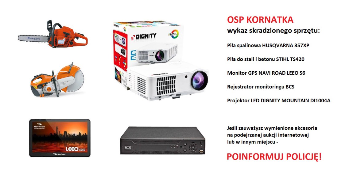 Złodzieje okradli wozy strażackie. Zabrali między innymi tablet monitorujący pracę pojazdów. Z remizy wynieśli dwie piły spalinowe i kanistry z benzyną. Ze świetlicy zniknął projektor, który służył mieszkańcom wsi. Jak informuje policja w Dobczycach, sprawcy zniszczyli także monitoring obiektu.