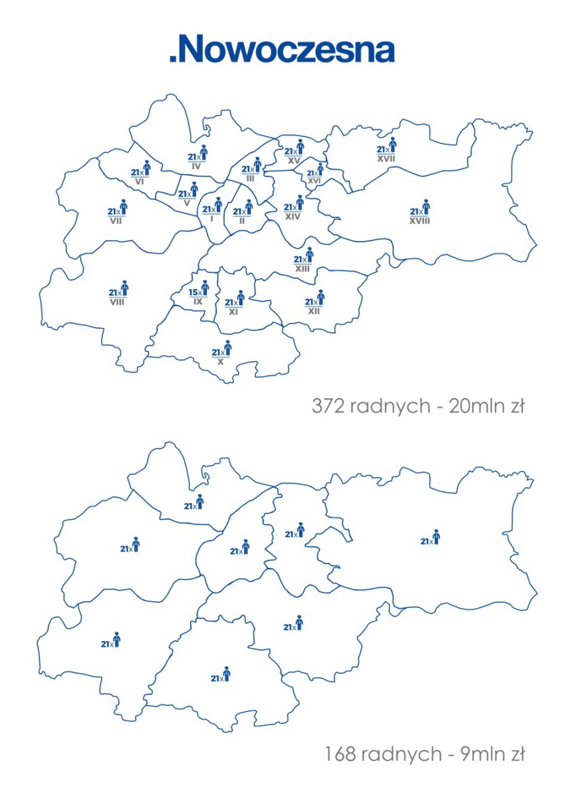 - W tym momencie osiemnaście dzielnic kosztuje nas około 20 milionów rocznie. To koszt samych radnych. Mamy 372 radnych. Proponujemy zmniejszenie liczy dzielnic - mówi radny Michał Starobrat. "Proponujemy osiem dzielnic. Dzieki temu zaoszczędzimy około 11 milionów złotych na kadencję" - dodaje radny Artur Buszek.