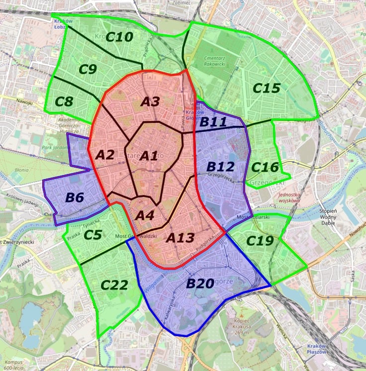 Średnia cena (7 zł za pierwszą godzinę) będzie dotyczyła podstref P7 czy P5, a więc Zwierzyńca i Podgórza, oraz podstref P3 i P4, rejony Grzegórzek i ul. Lubicz.