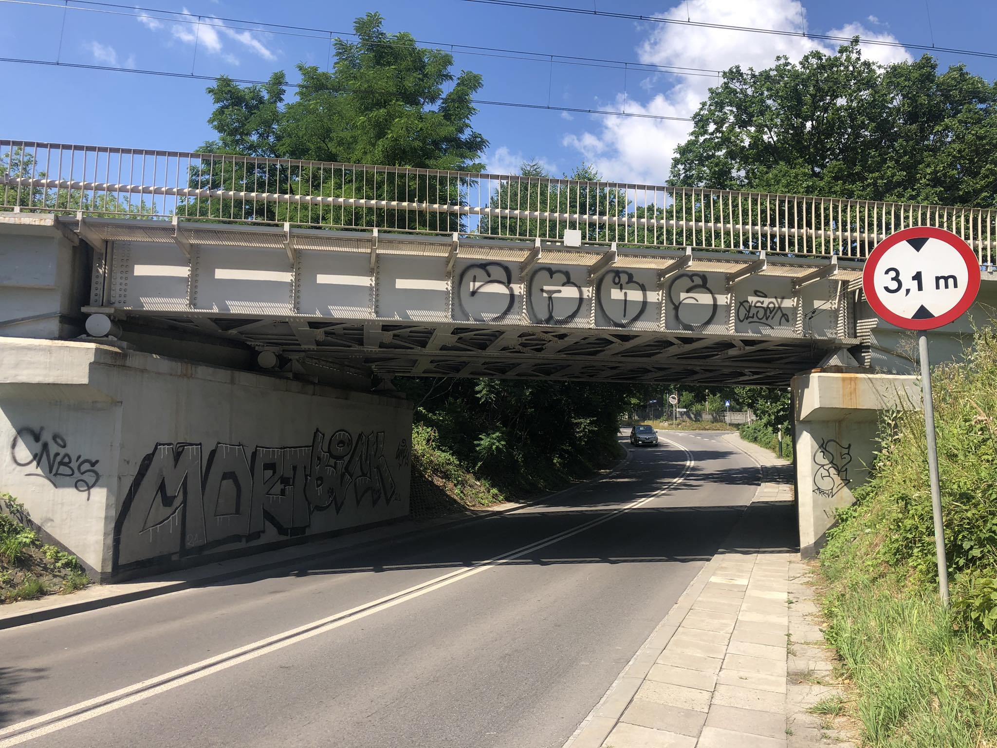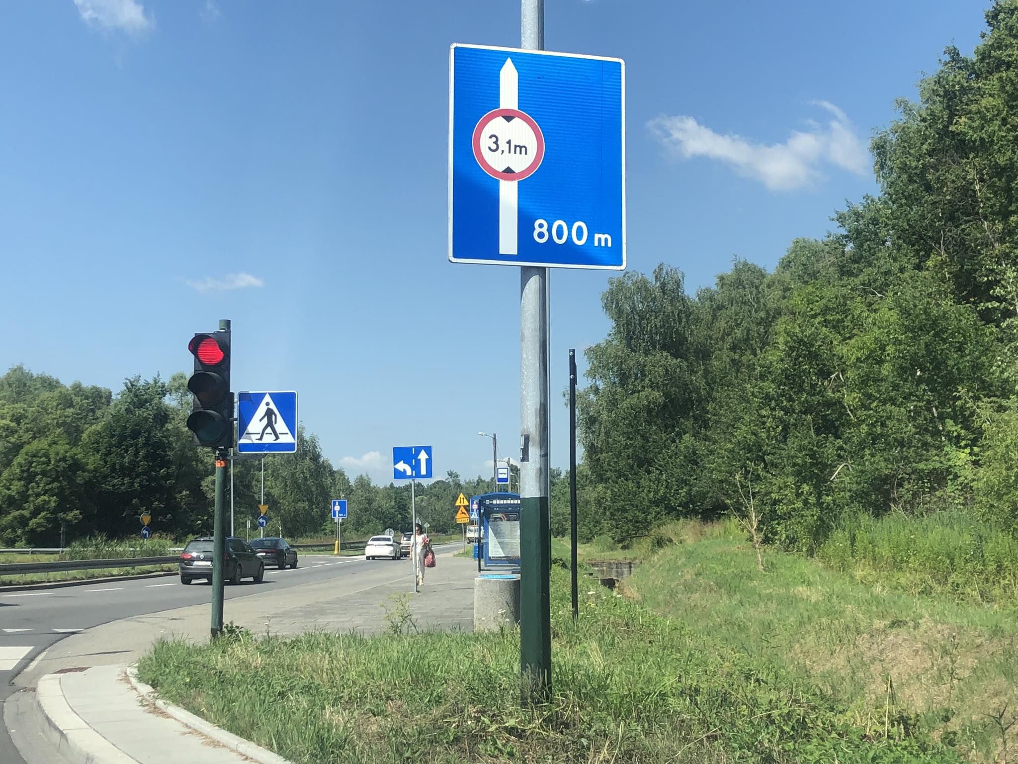 Drugi znak jest tuż przed samym wiaduktem z jednej i z drugiej strony, ale te znaki są tak usytuowane, że można jeszcze w ostatniej chwili skręcić w ulice, które odchodzą w bok przed wiaduktem zarówno z jednej, jak i z drugiej strony. Natomiast generalnie tanto miejsce najlepiej objechać autostradą.