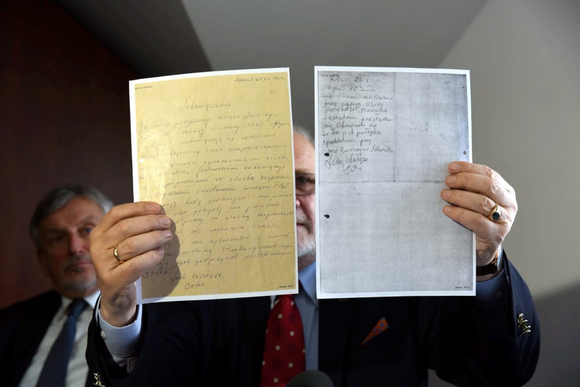 Zwrócił także uwagę na różnice między "dwoma kluczowymi dokumentami z grudnia 1970 r., czyli zobowiązaniem do współpracy, rzekomo napisanym i podpisanym przez Lecha Wałęsę, i dokumentem z autentycznym odręcznym pismem Wałęsy z tego samego okresu". Jak wskazał, pierwszy dokument "jest napisany pismem znacznie wyższej klasy (bardziej wyrobionym – PAP) niż pismo samego Lecha Wałęsy z tego samego okresu".