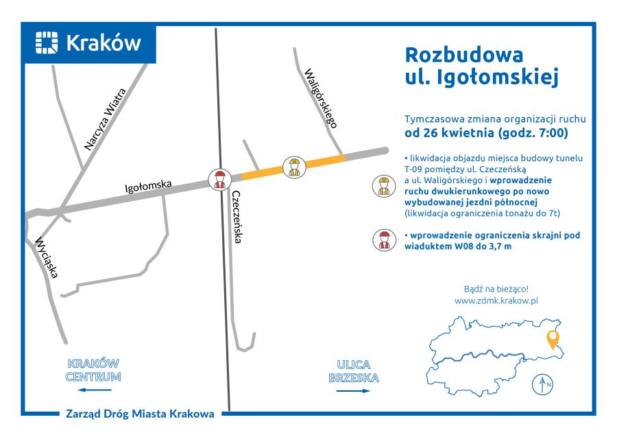 Na Igołomskiej będzie to zmiana na lepsze. W rejonie wiaduktu kolejowego i skrzyżowania z ulicą Czeczeńską zostanie zlikwidowany tymczasowy przejazd i będzie można przejechać już wyremontowanym fragmentem jezdni, po jednym pasie w każdym kierunku.