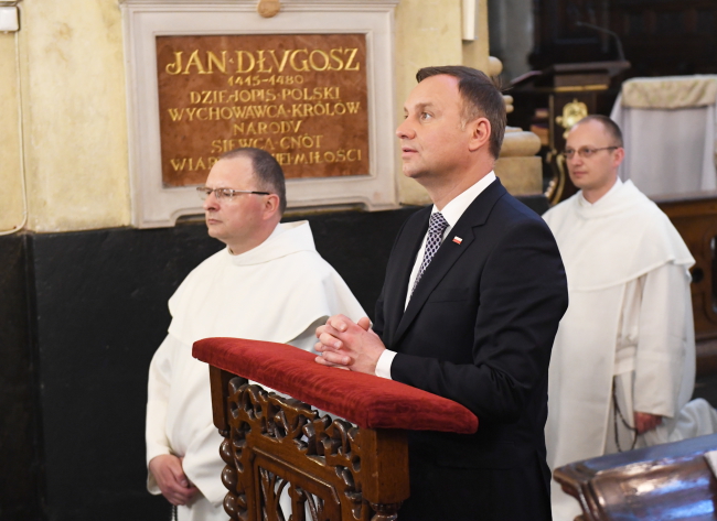 W kościele Andrzej Duda przez chwilę modlił się przy ołtarzu św. Stanisława, który jest usytuowany w pobliżu miejsca, gdzie według tradycji biskup poniósł śmierć męczeńską. Później prezydent odwiedził klasztorne muzeum i bibliotekę.