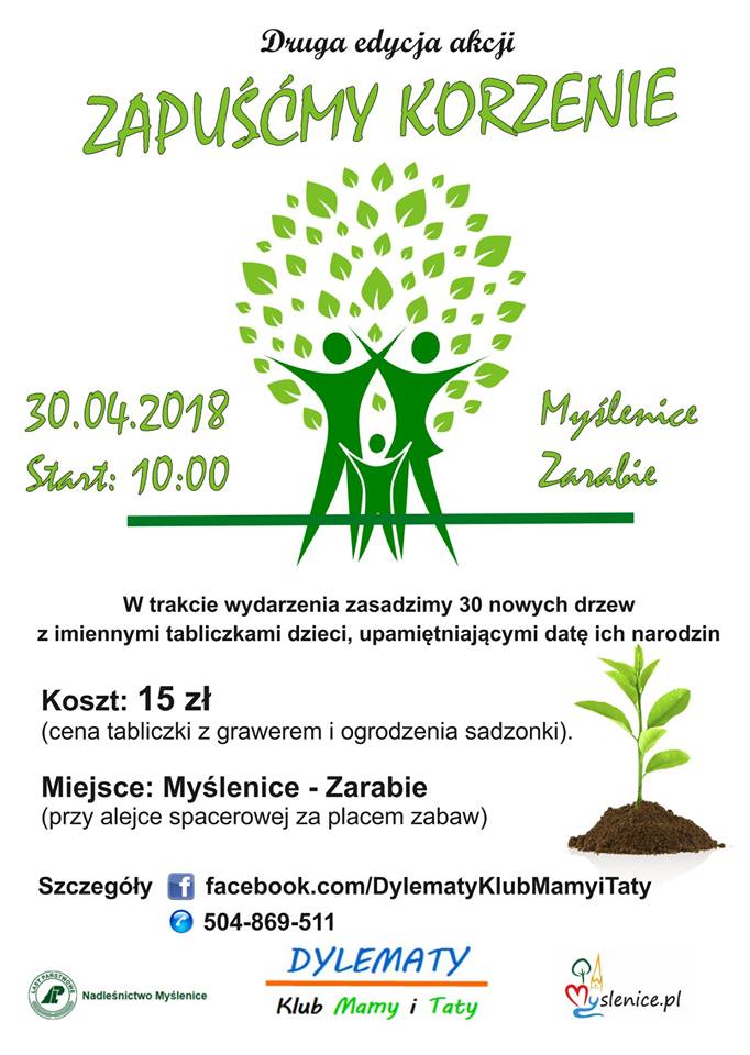 30 kwietnia w Myślenicach odbędzie się druga edycja akcji "Zapuśćmy korzenie". Wydarzenie ma na celu upamiętnić datę urodzin dzieci. Każda sadzonka opatrzona będzie tabliczką z imieniem dziecka i datą jego urodzin. Tak jak w ubiegłym roku posadzonych zostanie 30 nowych drzew.