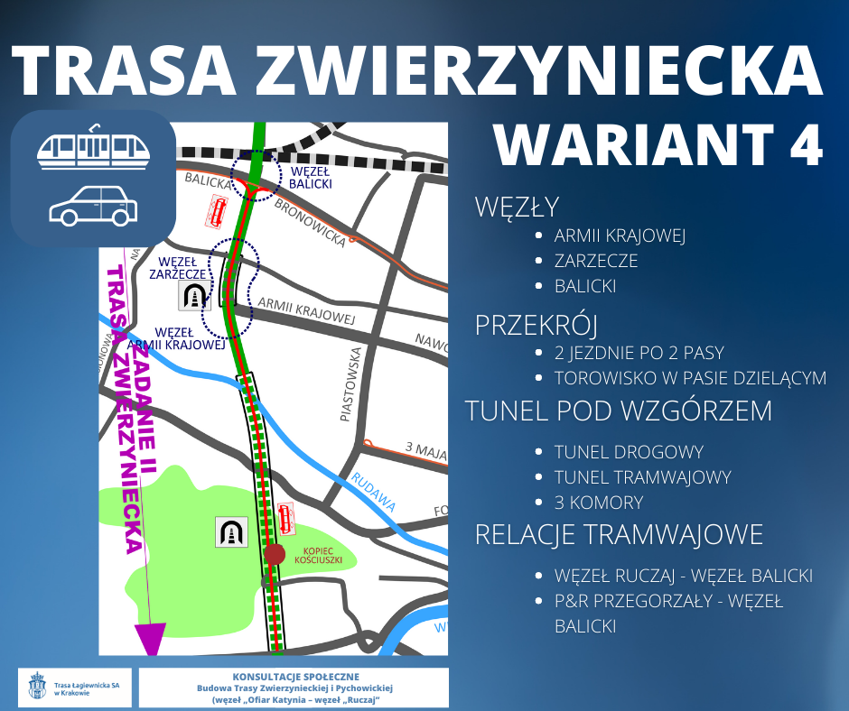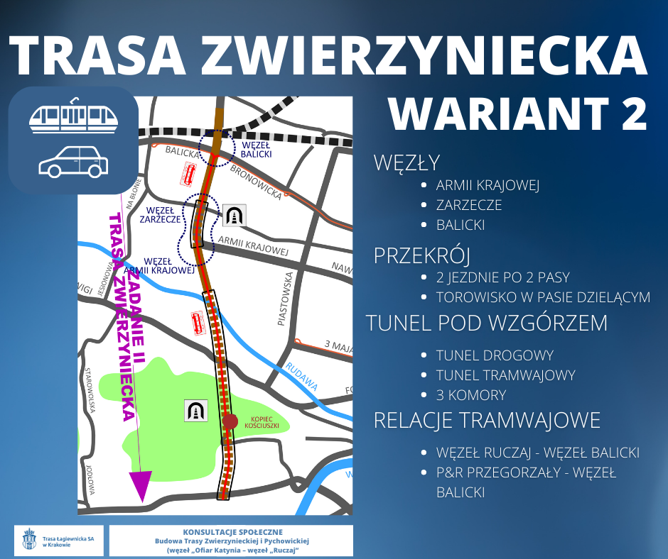 - Dla trasy Zwierzynieckiej są cztery warianty, obejmujące rozwiązania z układem linii tramwajowej i bez linii tramwajowej pod wzgórzem św. Bronisławy. Dla Trasy Pychowickiej chodzi głównie o przejście układu drogowego nad lub pod rzeką Wisłą - mówił na antenie Radia Kraków Krzysztof Migdał ze Spółki Trasa Łagiewnicka.