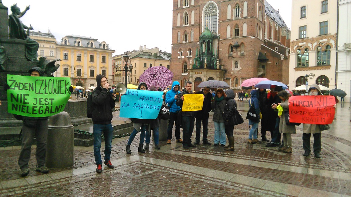 Antyrasistowskie manifestacje odbyły się dzisiaj w całej Polsce. Swoją pikietę zorganizowała także inicjatywa Witajcie w Krakowie. Na krakowski Rynek Główny uczestnicy pikiety przynieśli plakaty z hasłami takimi jak "Żaden człowiek nie jest nielegalny", "Chcę Arabkę za sąsiadkę", czy "Solidarność ponad granicami".