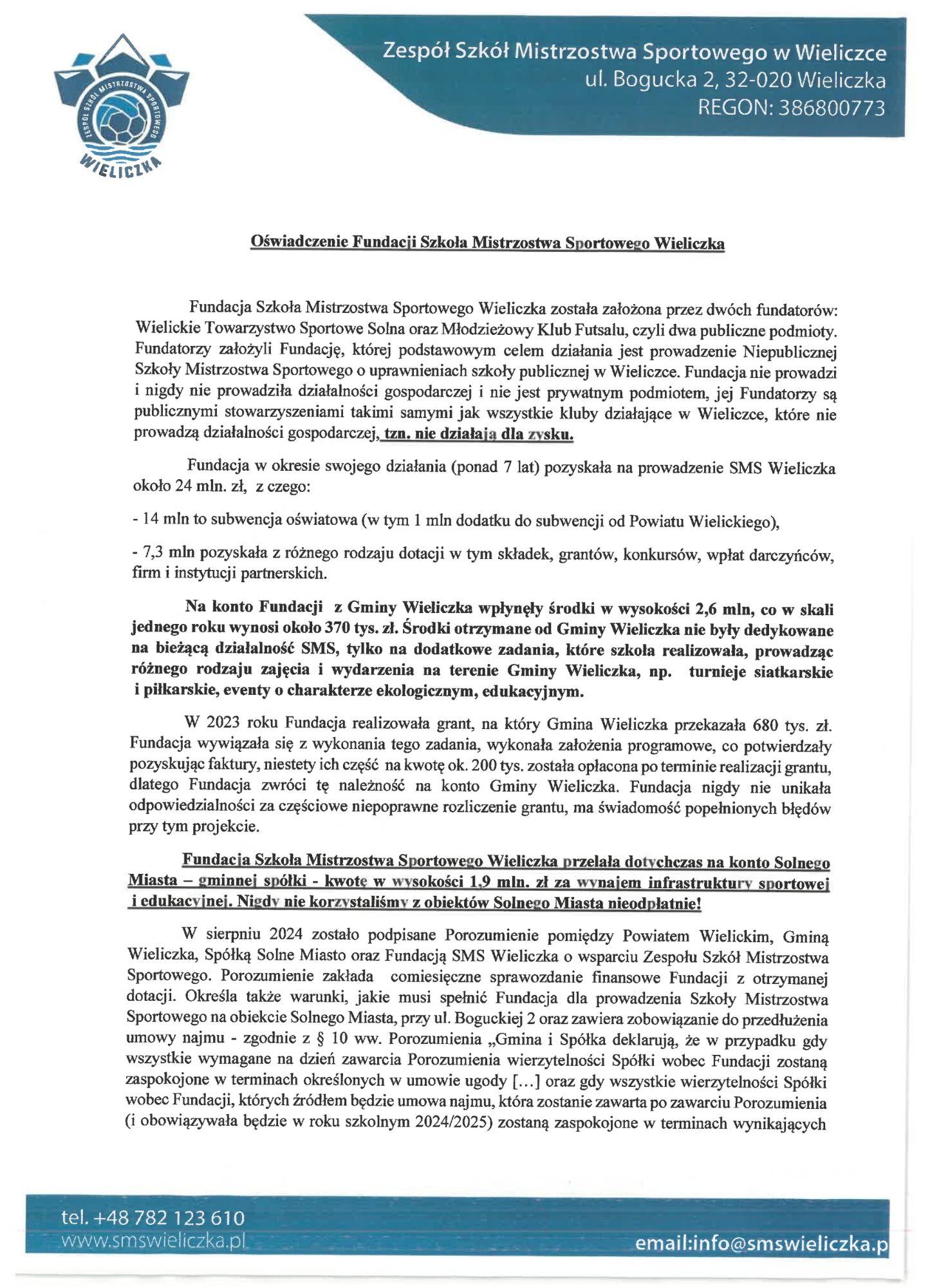 Wiceburmistrz Wieliczki podkreśla jednak, że gmina nie brała udziału w negocjacjach ze sponsorem.