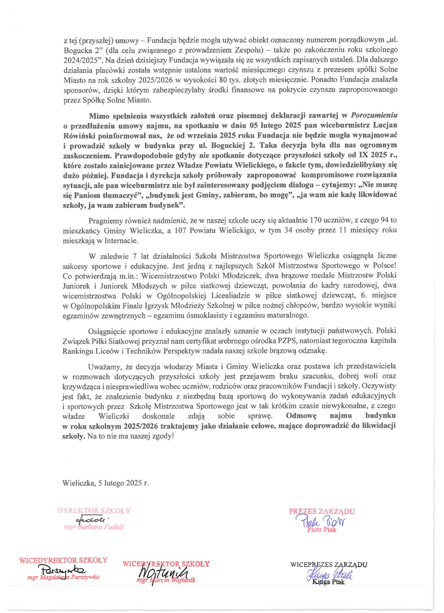 - Jesteśmy zaniepokojeni, nie rozumiemy jak władze Wieliczki mogą podejmować takie decyzje, które odbijają się przede wszystkim na dzieciach, które są w okresie przygotowawczym. Dziewczyny właśnie rozgrywają mistrzostwa polski, chłopcy mają sesję sparingową przed ligą. Muszą się skupić na grze, zawodach, a tu takie uderzenie - Mówiła Patrycja Góralczyk, przewodnicząca rady rodziców ośrodka.