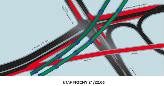 - zamknięcie dla ruchu kołowego dojazdu do skrzyżowania od strony ul. Powstańców Śląskich