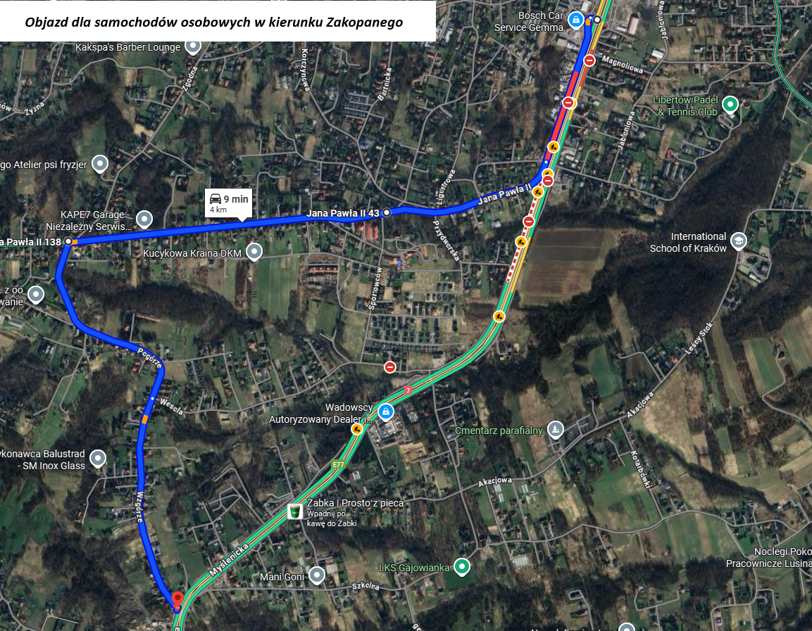 Uczestnicy protestu zamierzają przechodzić przez przejście dla pieszych zlokalizowane na skrzyżowaniu ul. Myślenickiej, z ulicami Wąwozową oraz Klimkówką na drodze krajowej nr 7.