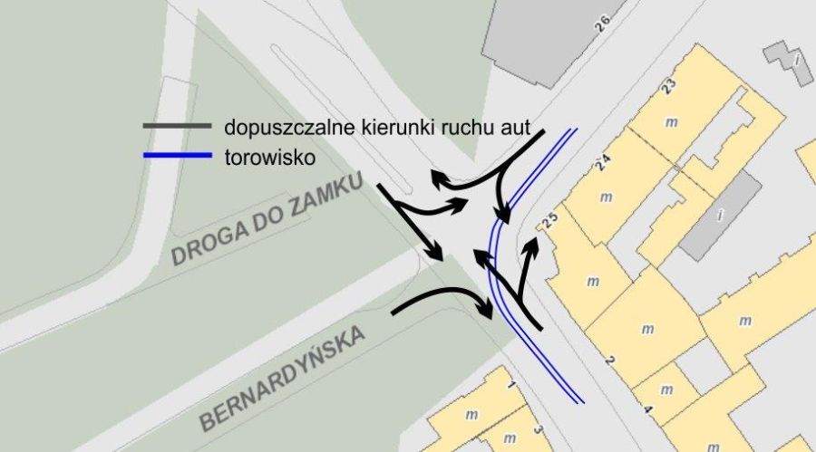 Aby uprościć przejazd przez skrzyżowanie i zmniejszyć liczbę potencjalnych kolizji wyjazd z ul. Bernardyńskiej będzie możliwy tylko w prawo. Takie rozwiązanie powinno też podnieść przepustowość skrzyżowania. Na pozostałych ulicach zasady ruchu nie będą zmieniane.