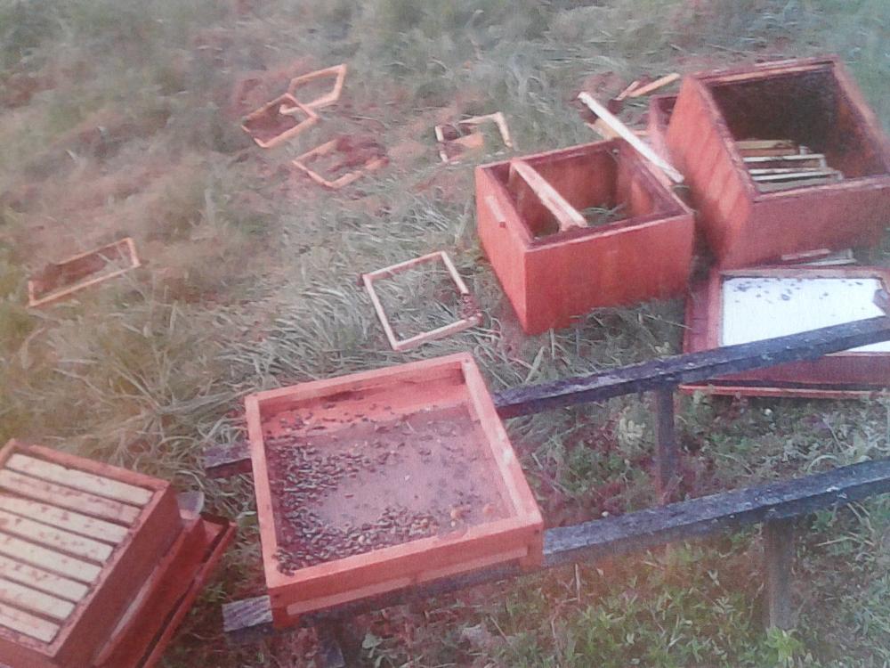 Niedźwiedź zrobił bałagan w dwóch pasiekach. Fot. Piotr Rachwalik, Nadleśnictwo Myślenice