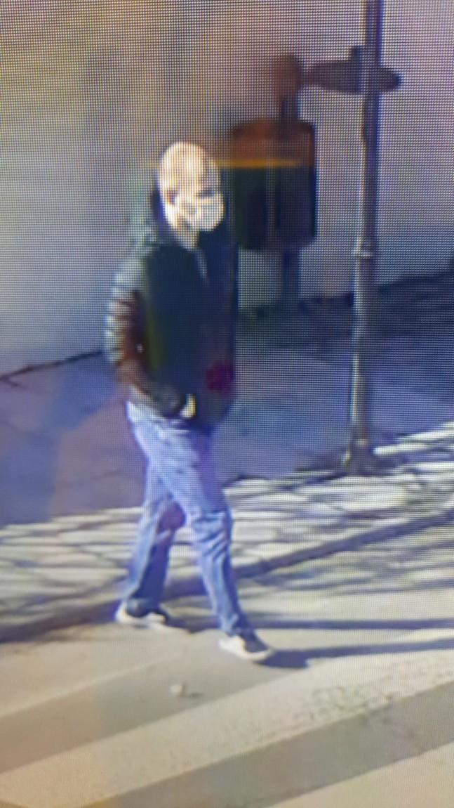 Sprawca jest mężczyzną w wieku około 30 lat, wzroście około 180 cm, jest szczupłej budowy ciała, ma ciemne oczy. W chwili napadu, na głowie miał założoną popielatą czapkę, na twarzy białą maseczkę, ubrany był w kurtkę koloru czarnego, niebieskie jeansowe spodnie, ciemne buty z białą podeszwą marki „Nike”.