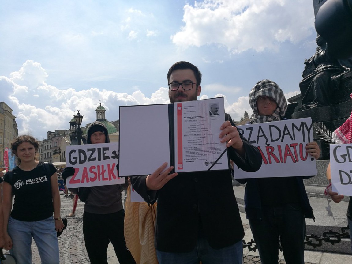 Z kolei demonstrujący przedstawiciele Młodzieży Wszechpolskiej podkreślali, że: "pojedyncze jednostki myślą, że mogą prowadzić własną politykę względem imigrantów, na co oczywiście nie ma żadnej zgody, bo jest to działanie przeciwko polskiemu rządowi". Przygotowali też akt zgonu prezydenta Jacka Majchrowskiego, który - zdaniem Młodzieży Wszechpolskiej - "zrobił sobie strzał w stopę. Niedługo będą wybory samorządowe, ale tym razem już nie wygra, ponieważ wola polskiego narodu już dawno została przekazana i Polacy nie chcą uchodźców".