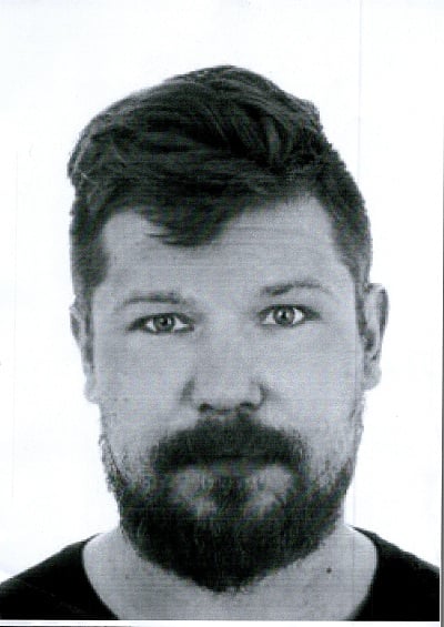 Ubrany najprawdopodobniej w spodnie dresowe koloru szarego lub granatowego, buty sportowe w ciemnym kolorze, ciemną kurtkę z kapturem.