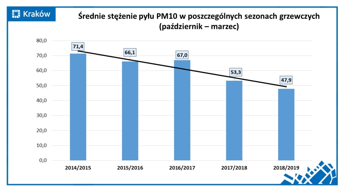 Są duże nadzieje, że nowe przepisy pomogą w obniżeniu poziomu zanieczyszczenia powietrza w Krakowie. Efekty już widać, odkąd rozpoczęto wymianę pieców. W sezonie grzewczym, cztery lata temu, średnie stężenie pyłu PM10 wynosiło ponad 70 mikrogramów na metr sześcienny. W ostatnim sezonie już niecałe 48.