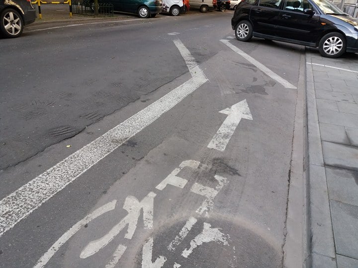 piszę w sprawie kiepskiego oznaczenia przejazdu rowerowego na ul. Szlak, czyli na jednym z głównych, nomen omen, szlaków rowerowych w Krakowie. Kiedyś był tam kontrapas, ale na rzecz miejsc parkingowych i zwiększenia przestrzeni na chodniku dla pieszych - utworzono tam kontraruch. Wszystko w porządku, ale wydaje mi się, że nie rzecz w tym, by możliwość przejazdu rowerom stworzyć, rzecz w tym, by tę drogą utrzymać w dobrym stanie. A tymczasem oznakowanie poziome nie zostało odświeżone tam od miesięcy! Prośbę do ZIKiT-u kierowałam (nie tylko ja) w kwietniu, w czasie, gdy w całym mieście trwały wiosenne poprawki. Teraz mamy... sierpień - i nic się nie zmieniło.