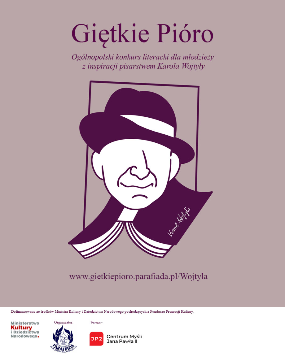 By pięknym słowem uczcić 100. rocznicę urodzin Karola Wojtyły zachęcamy do udziału w 5 Ogólnopolskim Konkursie Literackim dla młodzieży o Nagrodę Giętkiego Pióra.